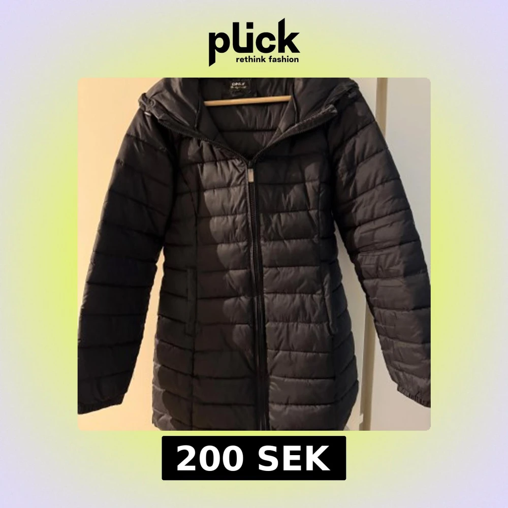 Säljer en svart pufferjacka från Only med huva och dragkedja framtill. Jackan har horisontella sömmar, två fickor och är perfekt för kyliga dagar. Den är lätt vadderad och har en stilren look som funkar till det mesta.