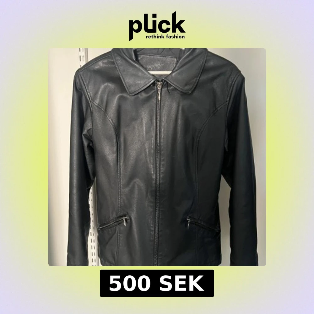 Snygg svart skinnjacka från med dragkedja framtill och två fickor med dragkedja. Klassisk krage och figurnära passform. Perfekt för dig som vill ha en stilren och tidlös jacka i garderoben. 100% läder