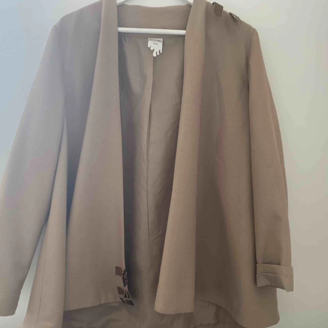 Säljer denna superfina tunna jackan från Monki! Den har lite knäppen över axeln och vid nedre kanten på jackan! 150kr+frakt!