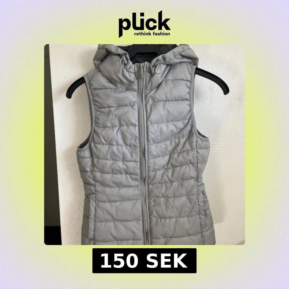Snygg grå dunväst från ONLY med huva i storlek xs