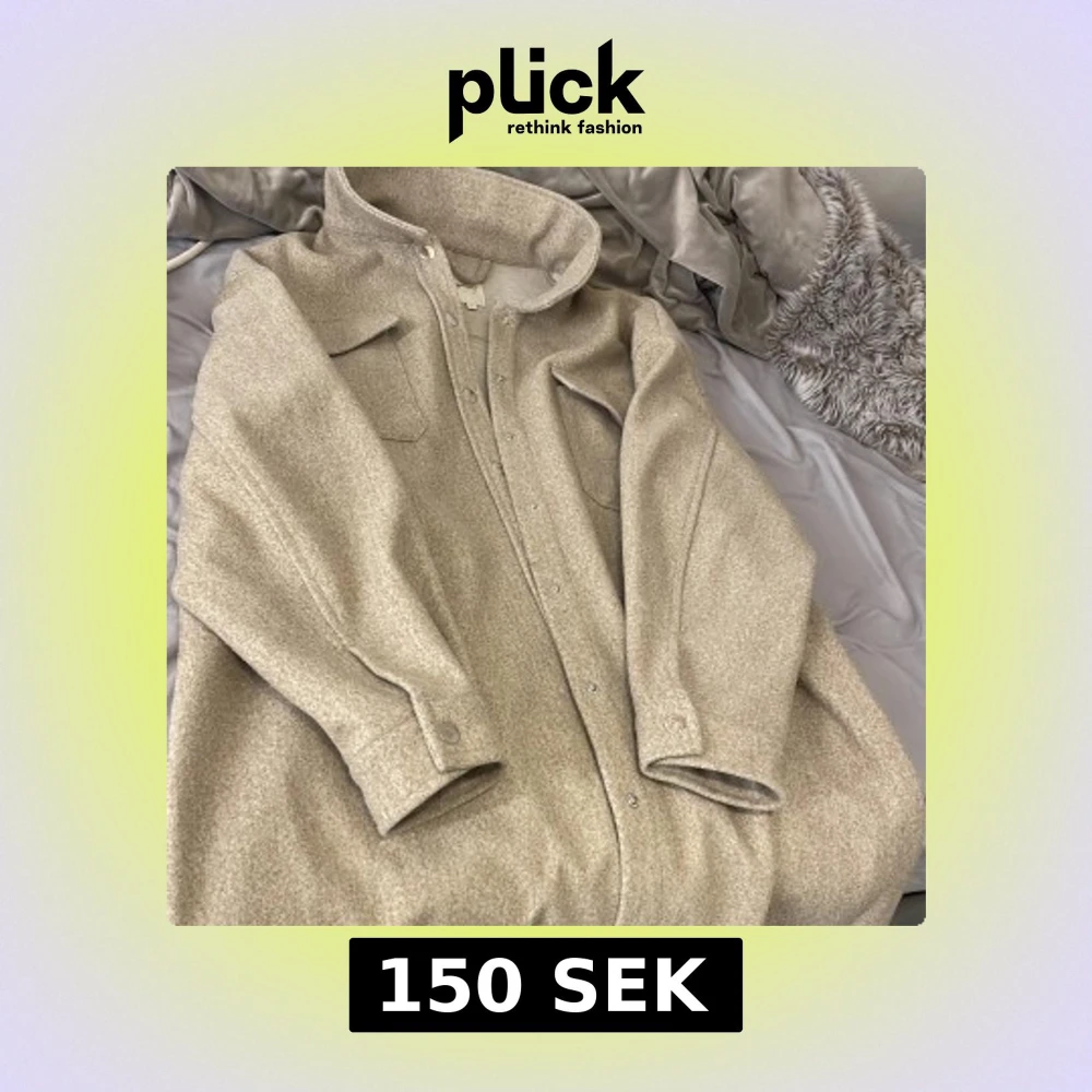 Säljer en beige overshirt jacka från ONLY i storlek L. Jackan har två stora bröstfickor med lock, knappar hela vägen och en mjuk ullblandad yta. Perfekt för lager-på-lager och har en clean, loose passform med klassisk krage.
