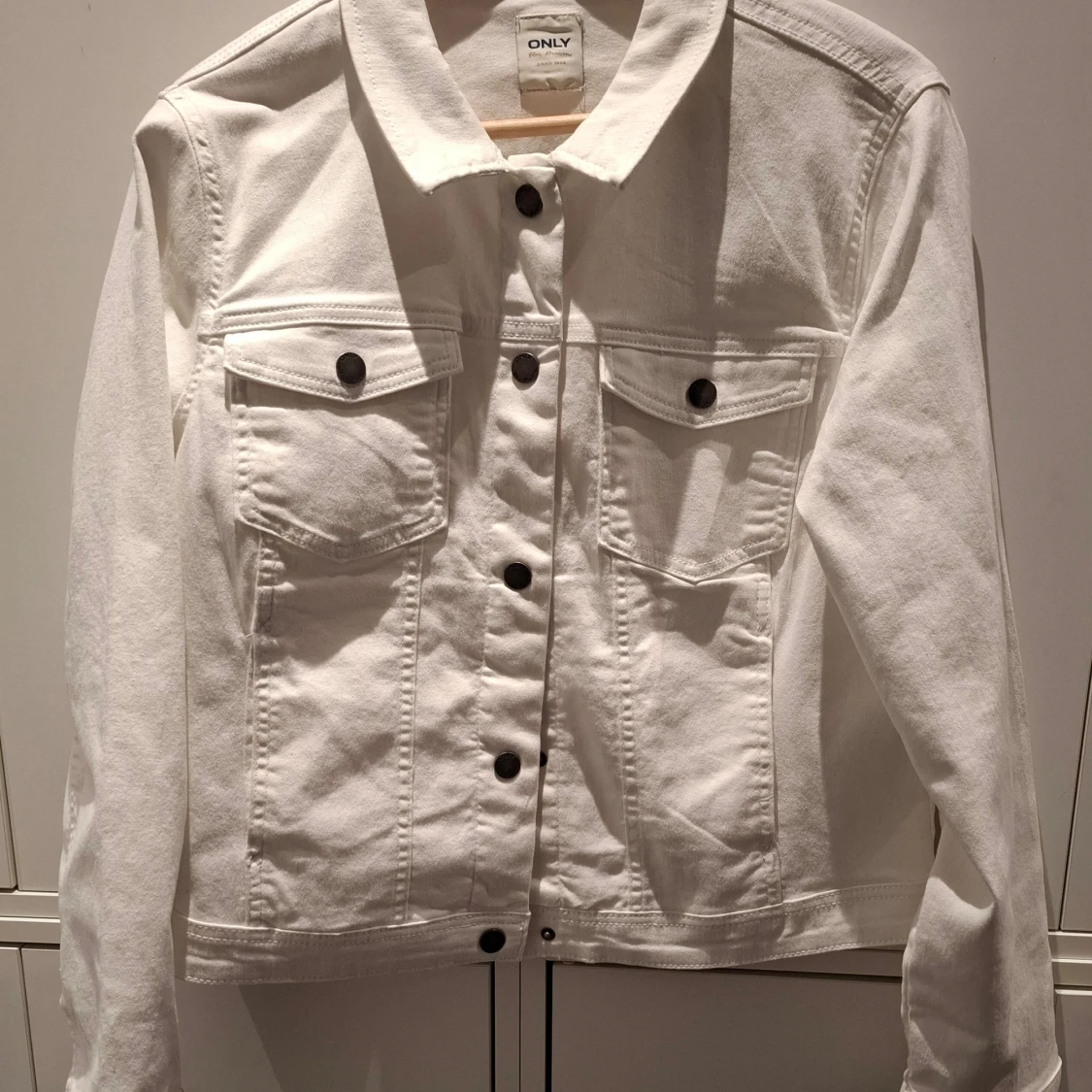 Snygg vit jeansjacka från ONLY med klassisk design. Jackan har knappar framtill och två bröstfickor med lock och knapp. Perfekt för en stilren look.