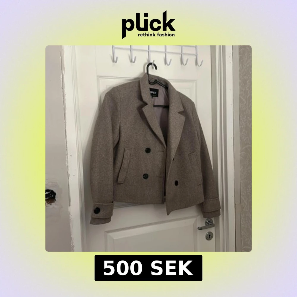 Snygg beige skepparkavaj från ONLY i klassisk modell med dubbelknäppning och krage. Jackan har raka fickor framtill, långa ärmar med knappdetalj vid ärmslut och är tillverkad i ett ull-liknande material. Perfekt för dig som gillar stilrena och tidlösa plagg. OBS!! Endast testad.