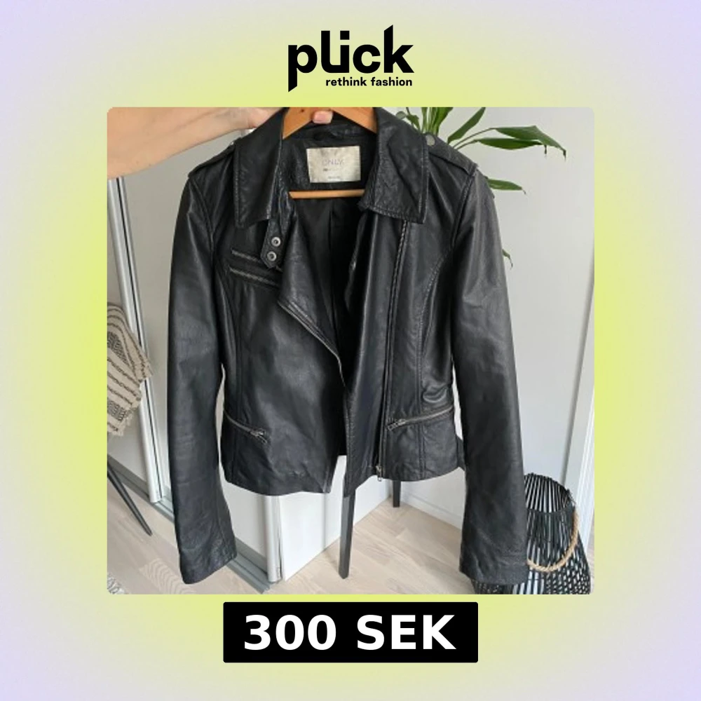 Snygg svart skinnjacka från Only med dragkedja och knappar. Jackan har en klassisk bikerstil med långa ärmar och flera fickor med dragkedjor. Perfekt för en cool look!