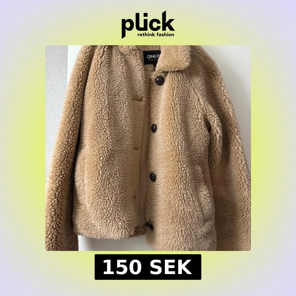 Supermjuk och fluffig teddyjacka från ONLY i beige färg. Jackan har klassisk krage, stora knappar framtill och är helfodrad. Perfekt för dig som vill ha en mysig och trendig look under kyliga dagar.