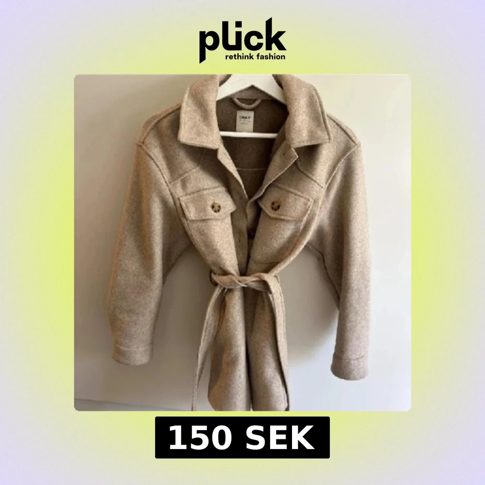 Snygg beige overshirt från ONLY i ullmix med stora bröstfickor, knappar framtill och knytskärp i midjan. Perfekt oversized look med klassisk krage och långa ärmar. Enkel att styla till olika outfits.