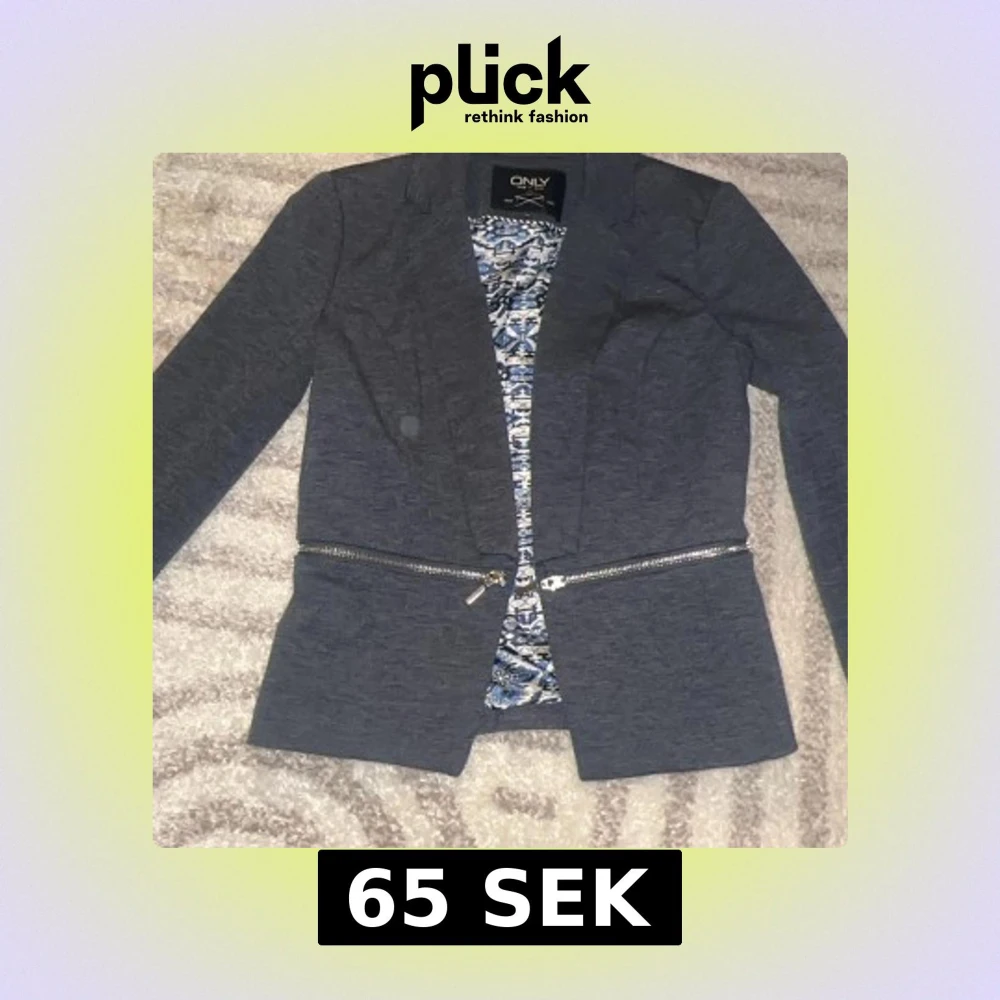 en fin grå jacka från only i storlek 34/ xs, med jätte detaljer på insidan och utsidan