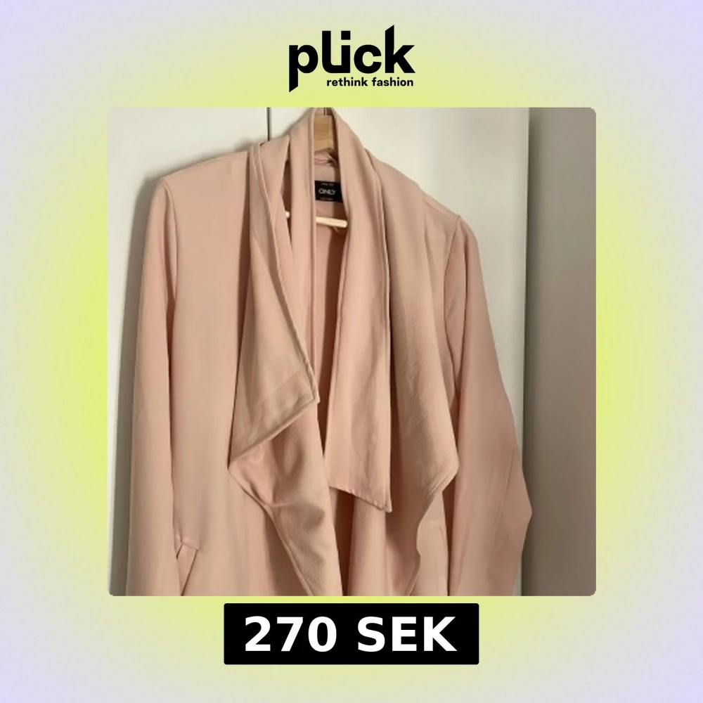 Säljer en ljusrosa kavaj från ONLY med avslappnad passform och draperad krage. Jackan har långa ärmar och är perfekt för att lyfta en outfit med sin stilrena look. Passar dig som gillar en feminin och modern stil.