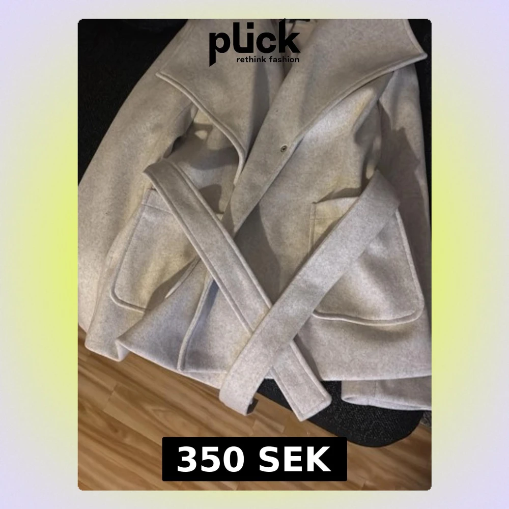 Stilren beige kappa med bred krage och stora fickor framtill. Kappan har ett matchande bälte i midjan för snygg passform och är perfekt för kyligare dagar. Enkel och modern design som passar till många olika outfits. Aldrig använd