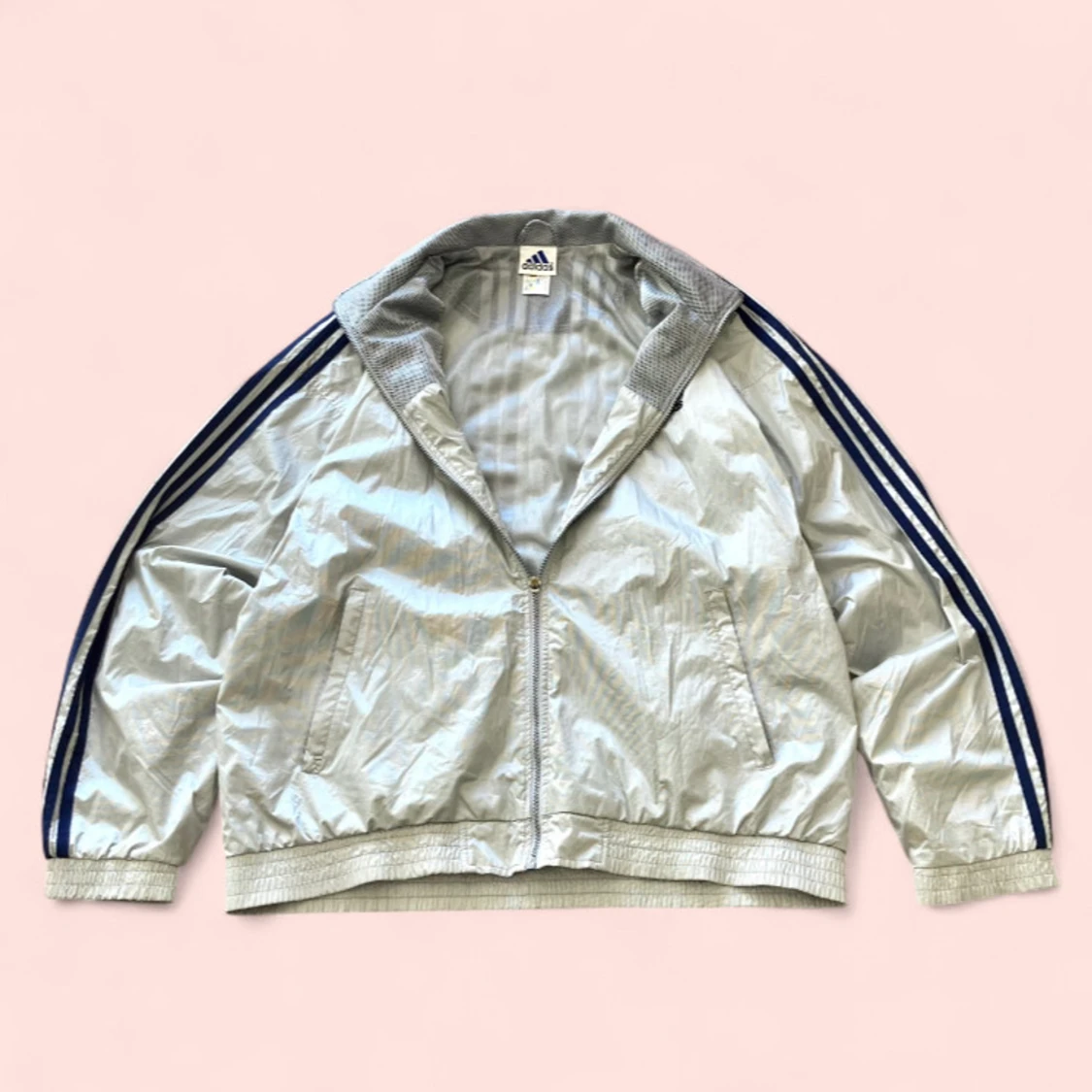 En riktigt snygg vintage 90’s silver Adidas windbreaker i storlek L. Priset går att diskuteras!