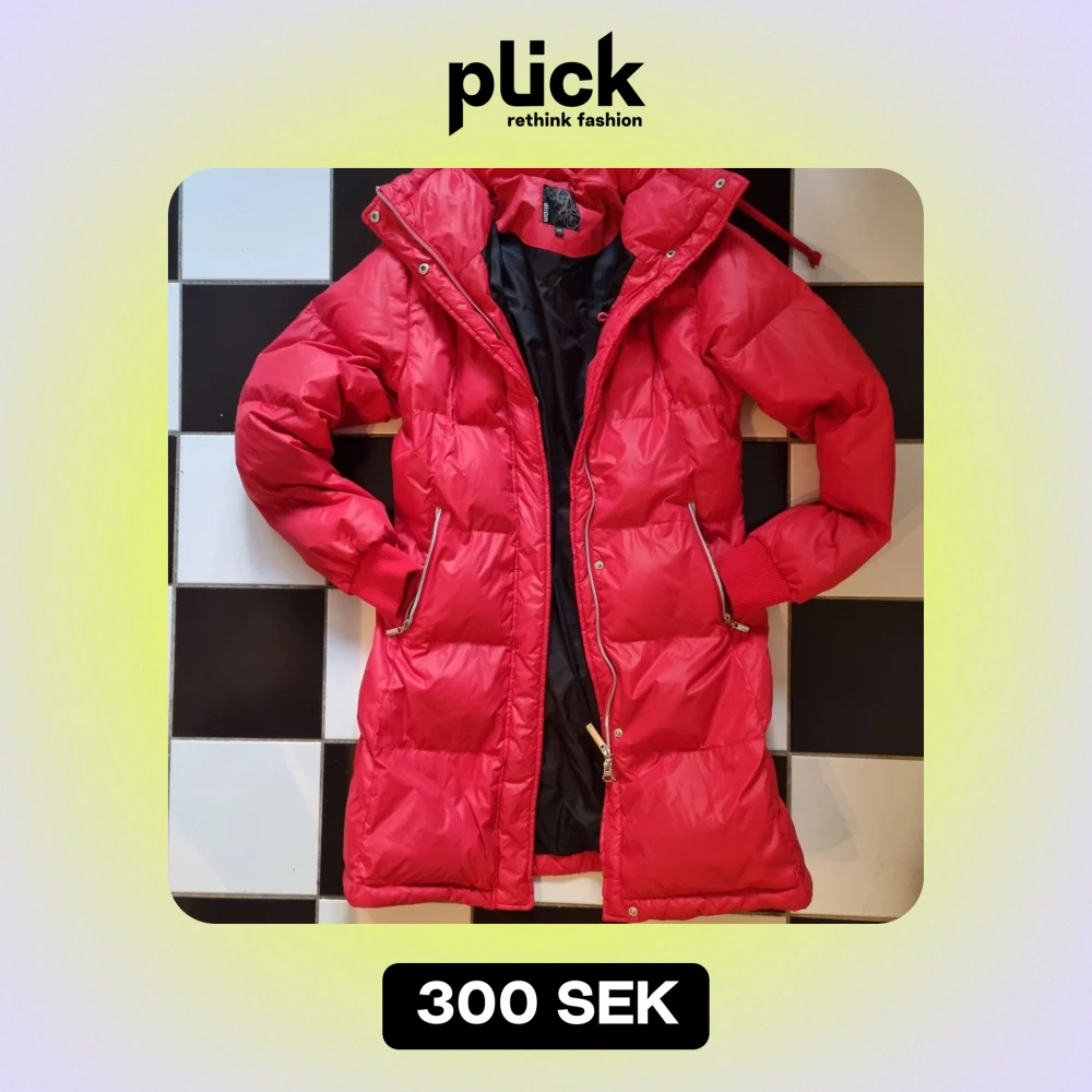 Säljer en snygg röd dunjacka från Stadium. Jackan är lång och har en dragkedja framtill samt praktiska fickor med dragkedjor. Perfekt för kalla vinterdagar med sitt varma dunfoder. Yttermaterialet är 100% nylon vilket gör den både lätt och slitstark. Passar perfekt för vinterns alla äventyr! 🔥