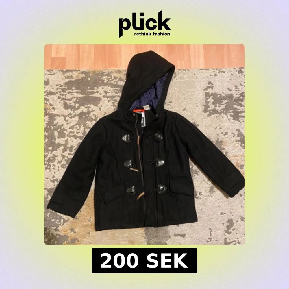 Svart duffeljacka från Okaou med huva och klassiska träknappar. Jackan har quiltat blått innerfoder och två stora fickor framtill. Perfekt för kyliga dagar och har en snygg, tidlös look med dragkedja och knäppning. Jackan är till barn, storlek 116 barn. Pris kan diskuteras! Endast seriösa köpare, tack! ☺️