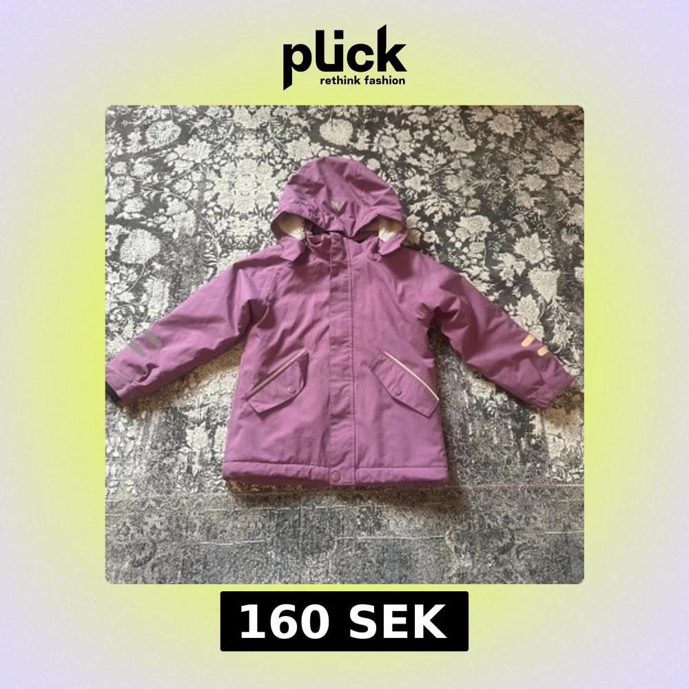 Lila vinterjacka från McKINLEY med avtagbar huva, reflexdetaljer på ärmar och rygg samt två snedställda fickor med lock. Storlek 116. Jackan har dragkedja och knappar framtill. Perfekt för kalla dagar.