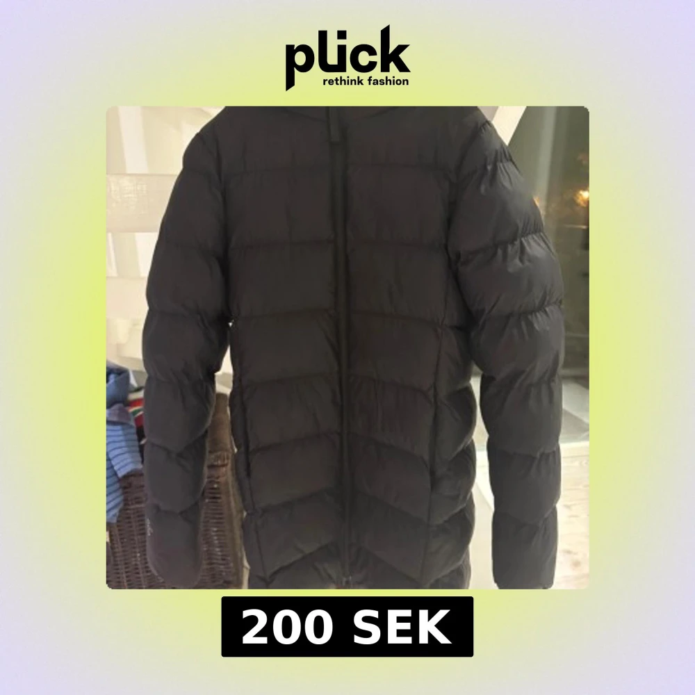 Säljer en svart dunjacka från Neomondo med huva och dragkedja framtill. Jackan är lång i modellen och har puffiga, quiltade sektioner som ger en schysst look. Perfekt för kalla dagar och enkel att matcha med jeans eller mjukisar.