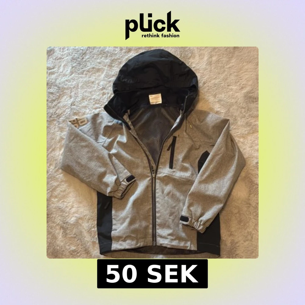Säljer en grå vindjacka från Lindberg med svarta detaljer och dragkedja. Jackan har en justerbar huva och elastiska ärmslut med kardborreband. Perfekt för blåsiga dagar! 🌬️jackan har en liten reva i ryggen och på armen se bilder. Annars är jacka. I mycket fint skick.