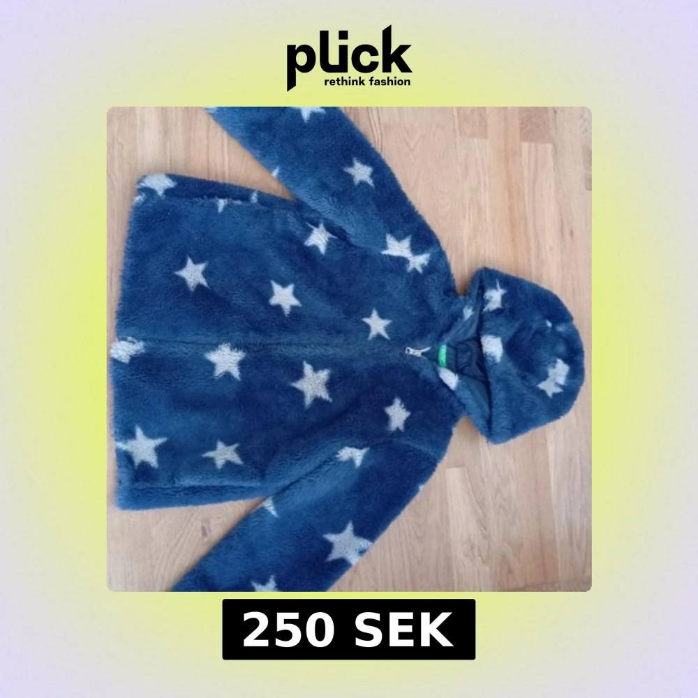 Mysig blå teddyjacka från United Colors of Benetton med vita stjärnor över hela jackan. Jackan har huva, dragkedja framtill och är tillverkad i fluffigt teddy-material. Perfekt för dig som vill sticka ut med en cool och lekfull stil.