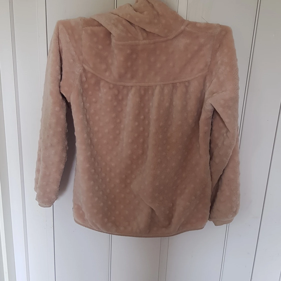Supermjuk teddyjacka i beige från Pomp de Lux. Jackan har huva, dragkedja framtill och ett diskret prickigt mönster i tyget. Perfekt för dig som gillar mysiga och stilrena plagg med en chill vibe.