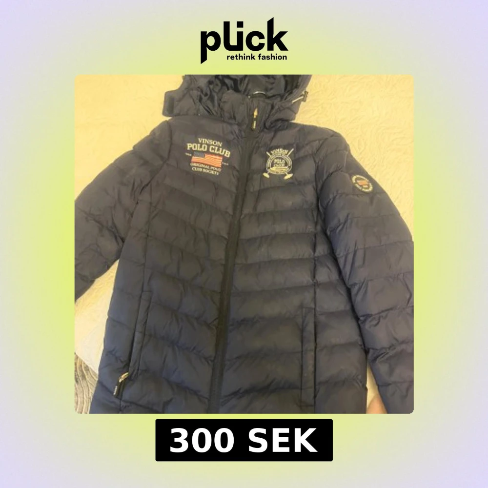 Snygg mörkblå pufferjacka från Vinson Polo Club med broderade loggor på bröstet och ärmen. Jackan har huva, dragkedja framtill och två sidofickor med dragkedja. Perfekt för kalla dagar och har en sportig vibe med coola detaljer. Köparen står för frakten.