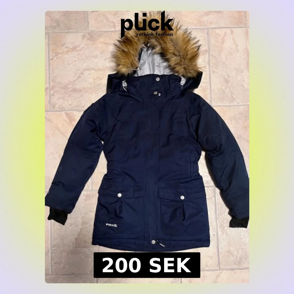Parkas i mörkblått från McKinley med huva och snygg fuskpäls. Jackan har långa ärmar, dragkedja och knappar framtill, samt praktiska fickor med lock och silverfärgade detaljer. Perfekt för kalla dagar med sin varma och skyddande design.