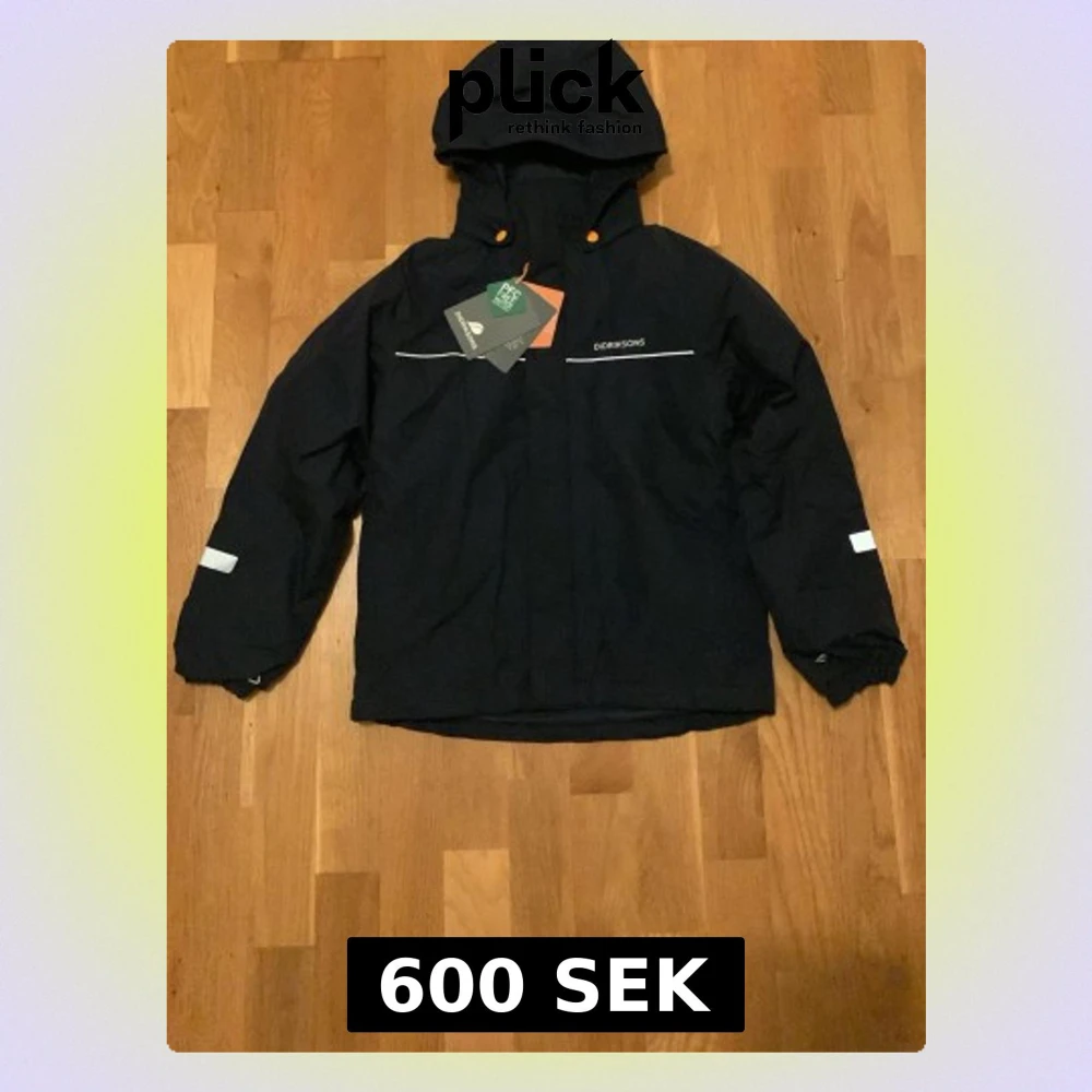 Säljer en svart vindjacka från Didriksons med huva och orangea detaljer vid knapparna. Jackan har vita reflexdetaljer på ärmar och rygg, samt diskret logga på bröstet. Materialet är polyester och jackan är perfekt för blåsiga dagar. Den är helt ny med prislapp aldrig använd. Extend szize. 1000kr nypris