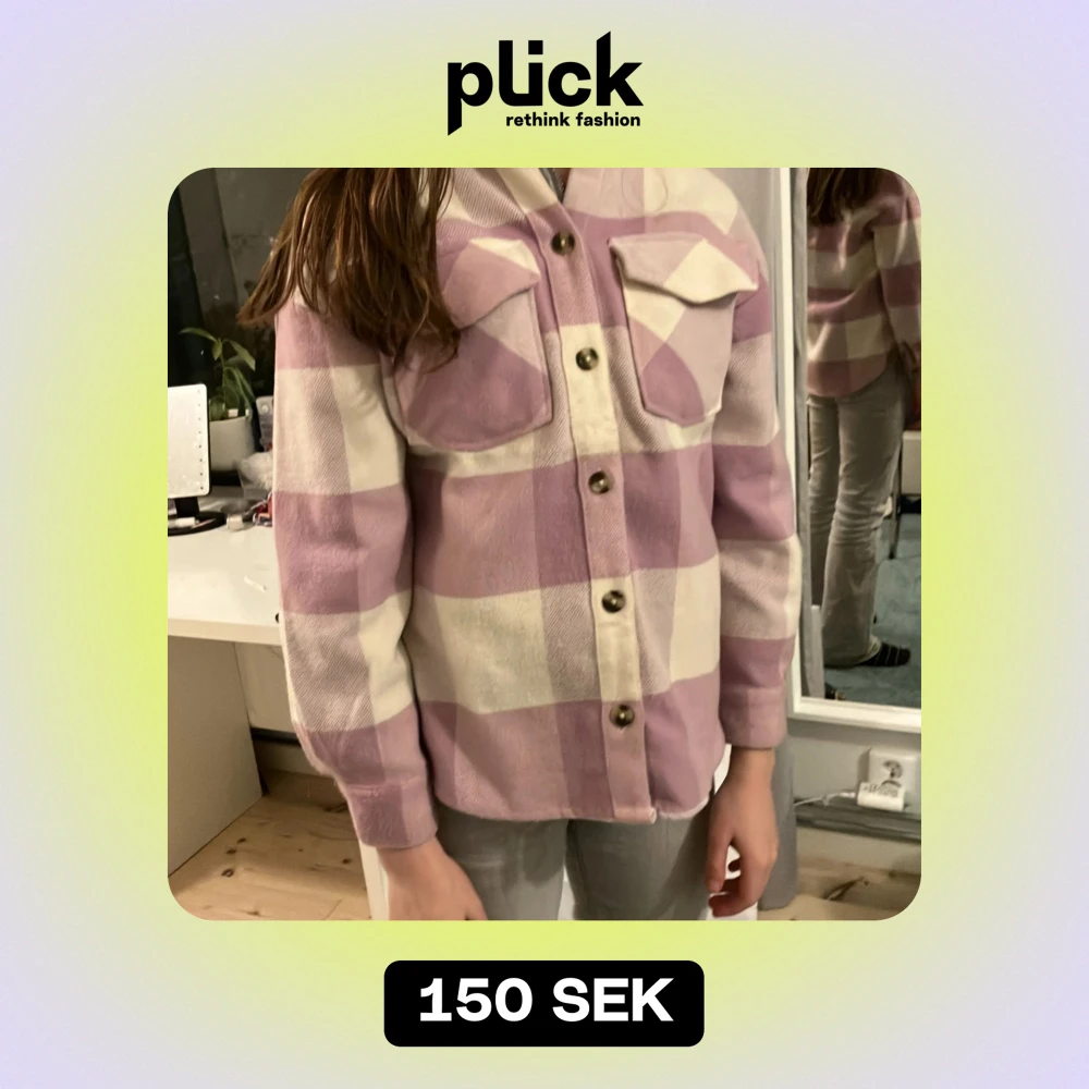 Säljer en superfin rutig overshirt i lila och vit. Den har knappar framtill och två stora bröstfickor. Perfekt för höst och vår, och funkar både som jacka och skjorta. Den är i bra skick och passar perfekt för en avslappnad stil.
