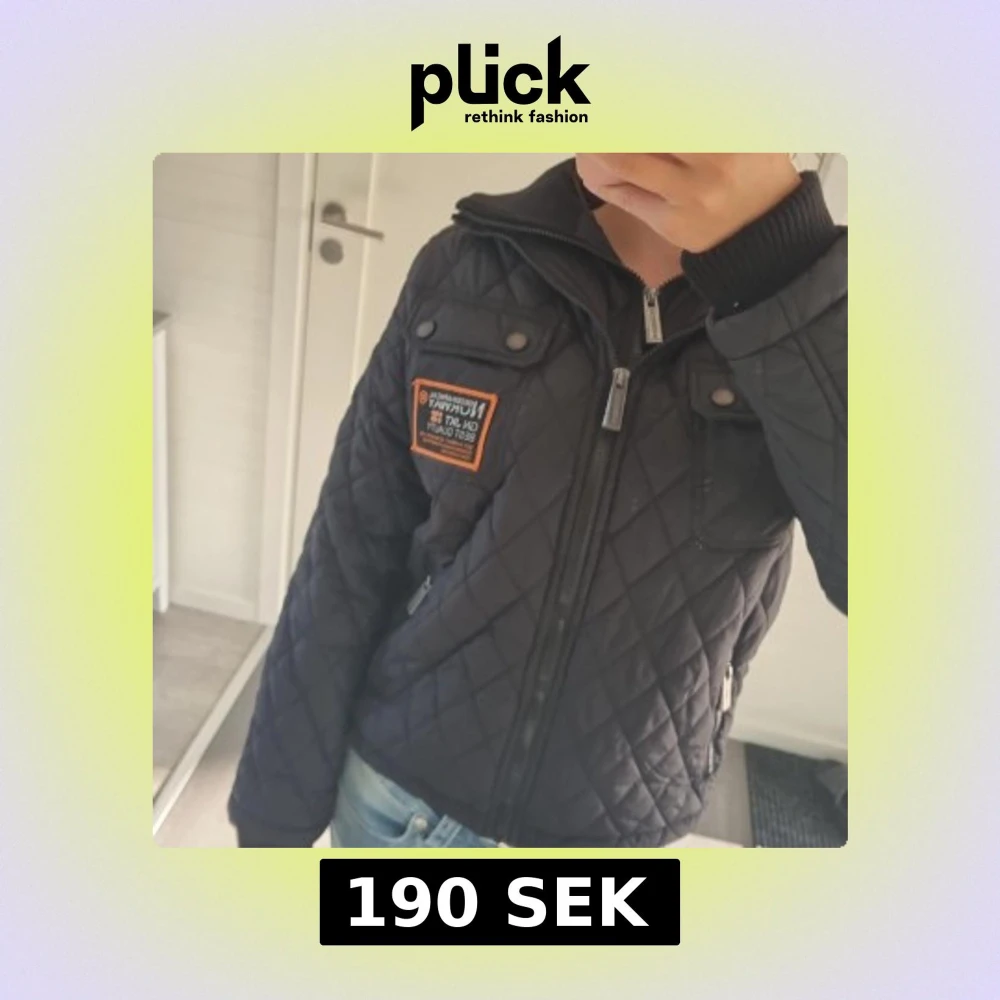Quiltad svart jacka från Geographical Norway med coola detaljer och orange patch på bröstet. Jackan har dragkedja framtill, ribbad krage och långa ärmar. Perfekt för dig som gillar en sportig och urban stil. Passar höst och vinter.