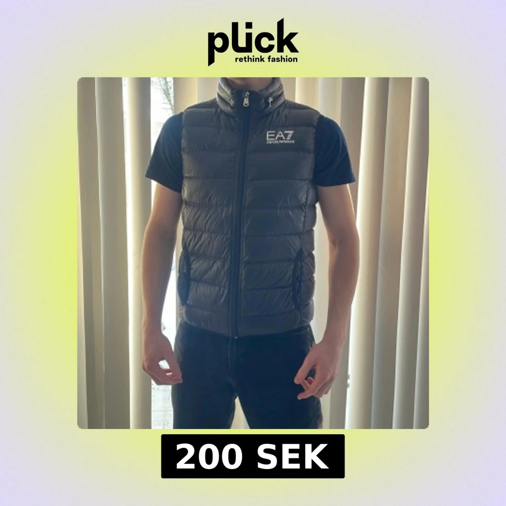 Säljer en stilren svart dunväst från Emporio Armani EA7. Västen har en dragkedja framtill och två praktiska fickor. Perfekt för att hålla värmen med stil. Nypris 1399kr, Passar bra till både casual och mer uppklädda tillfällen. Bra pris!!✅