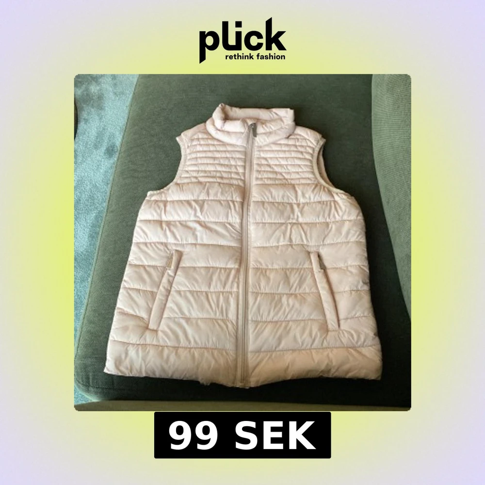 Säljer en ljusrosa dunväst från 157 Funky med dragkedja framtill och två fickor. Västen har en hög krage och quiltad design som ger en sportig look. Perfekt för lager-på-lager under kyliga dagar.