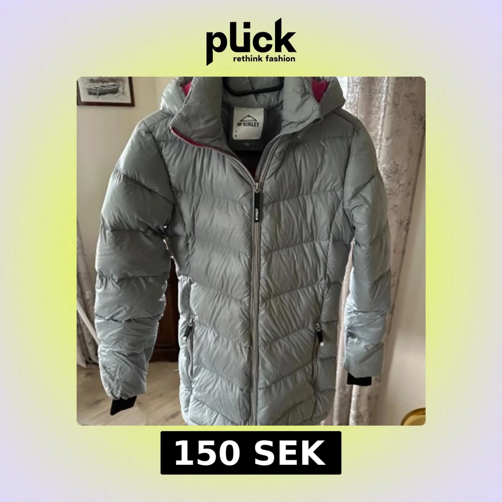 Säljer en grå pufferjacka från McKinley med huva och rosa foder. Jackan har dragkedja framtill och vid fickorna, samt långa ärmar med svarta muddar. Perfekt för kalla dagar och har en clean, sportig look.