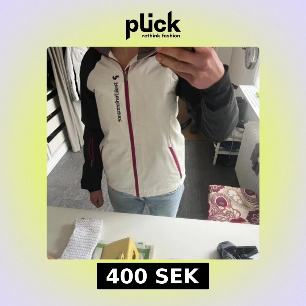 Peak Performance vindjacka i vit och svart med rosa dragkedjor och logga på bröstet. Jackan har långärmade svarta ärmar, hög krage och praktiska fickor med dragkedja. Perfekt för dig som gillar sportig och clean stil. Se defekt sista bilden.