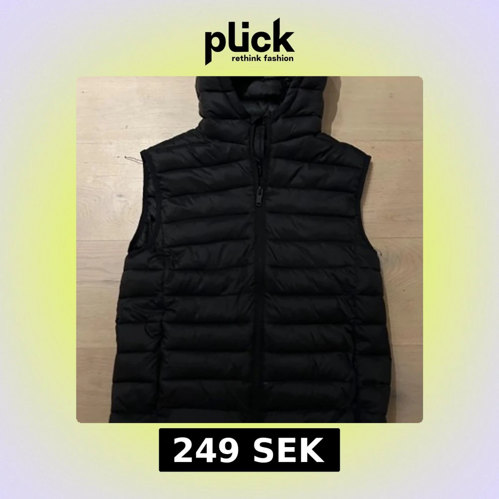 Snygg svart dunväst med huva och dragkedja framtill. Västen har quiltad design och är perfekt för lager-på-lager-stil. Passar dig som gillar en sportig och clean look.