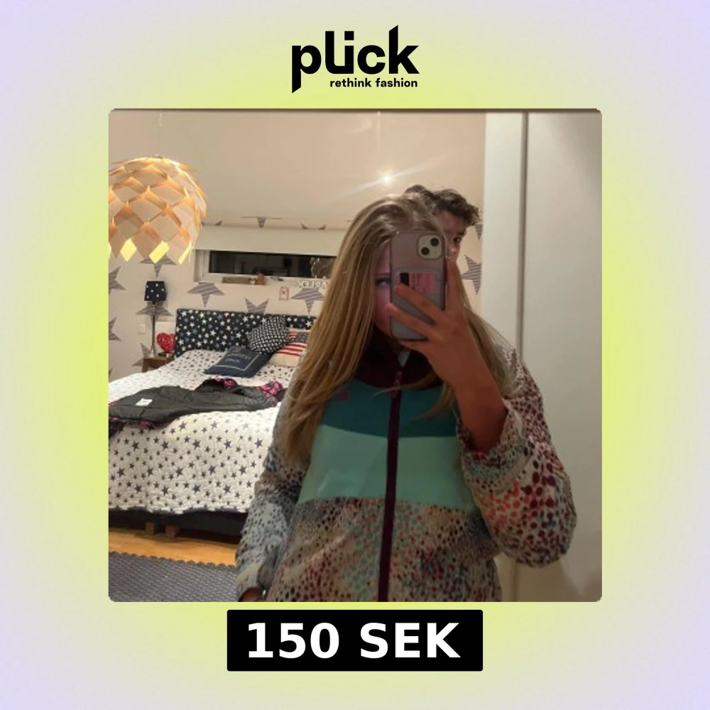 Säljer en unik och färgglad jacka med prickigt mönster i olika färger. Jackan har en dragkedja framtill och är Perfekt för att liva upp garderoben!