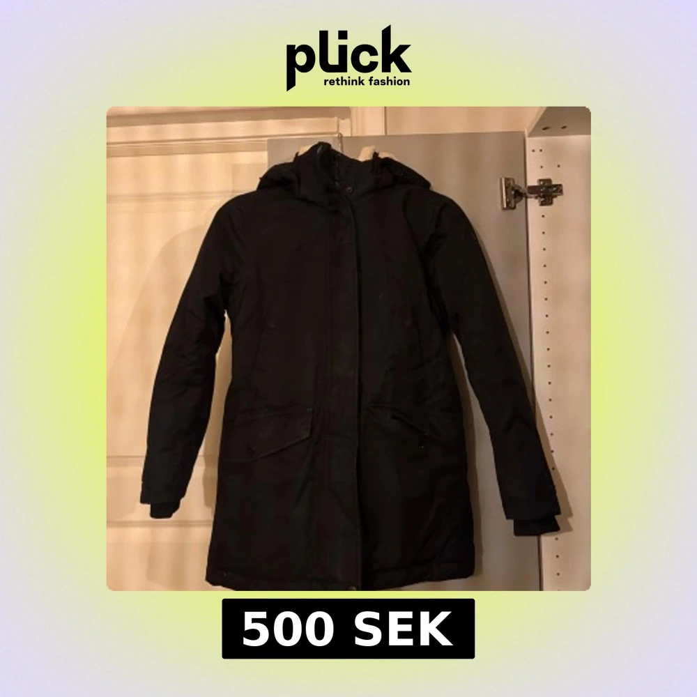 Svart parkasjacka från McKinley med mysigt vit teddyfoder på insidan och huva. Jackan har dragkedja, knappar, stora fickor ( 4st ) och reflexdetalj på ärmen. Justerbar midja med snöring. Perfekt för kalla dagar!
