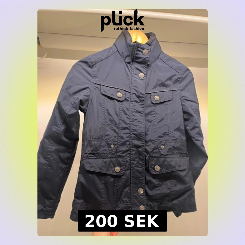 Parkajacka i mörkblått från Staccato med hög krage, fyra framfickor med lock och snygga metallknappar. Jackan har ribbade detaljer vid kragen och axlarna samt emblem på ryggen. Materialet är slitstark polyester och passformen är normal. Den passar 152
