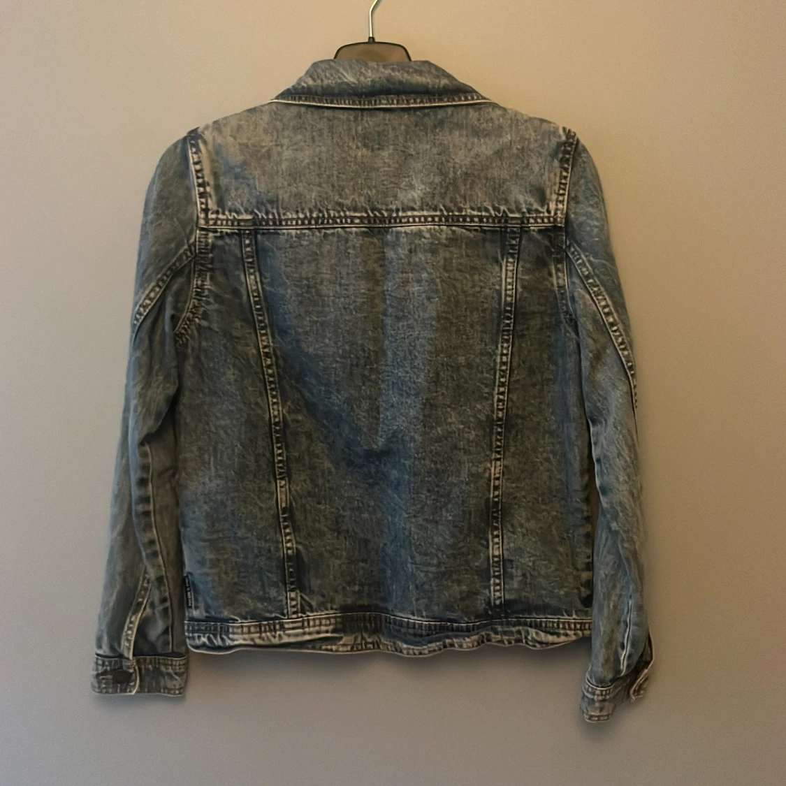Snygg blå jeansjacka från Polarn O. Pyret i storlek 152. Klassisk modell med två bröstfickor med knappar, slitna detaljer och markerade sömmar. Perfekt för dig som gillar en avslappnad och cool stil. Jackan har långa ärmar och knäppning framtill.