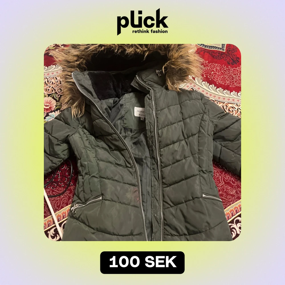 Säljer en grön quiltad jacka från Rosetti i storlek 158/164. Jackan har en mysig fuskpälsfodrad huva och dragkedja framtill. Perfekt för kalla vinterdagar! 🧥❄️