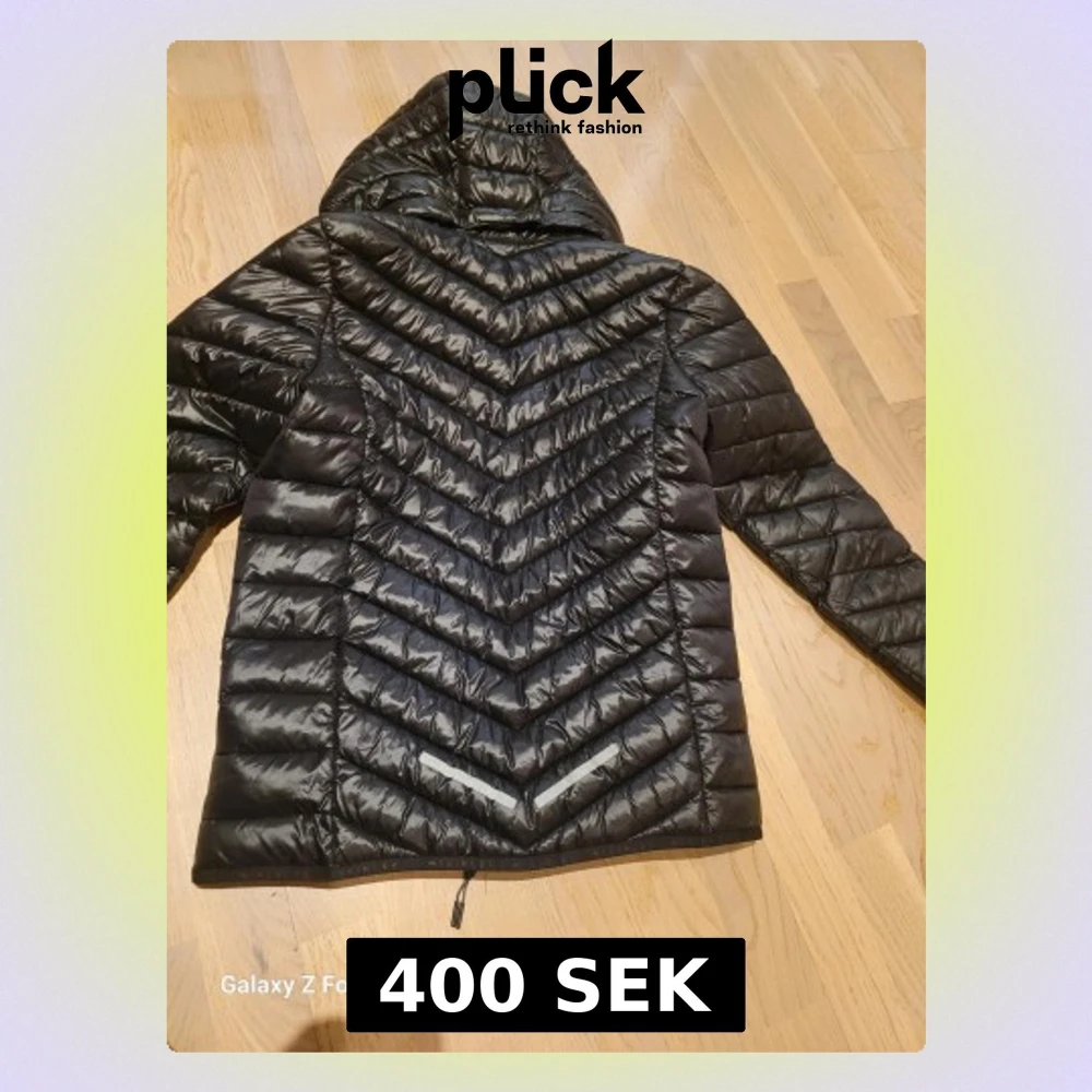 Säljer en svart dunjacka från McKinley med huva och snyggt quiltat mönster. Jackan har dragkedja framtill och reflekterande detaljer nedtill på ryggen. Perfekt för kalla dagar och riktigt skön att ha på sig.
