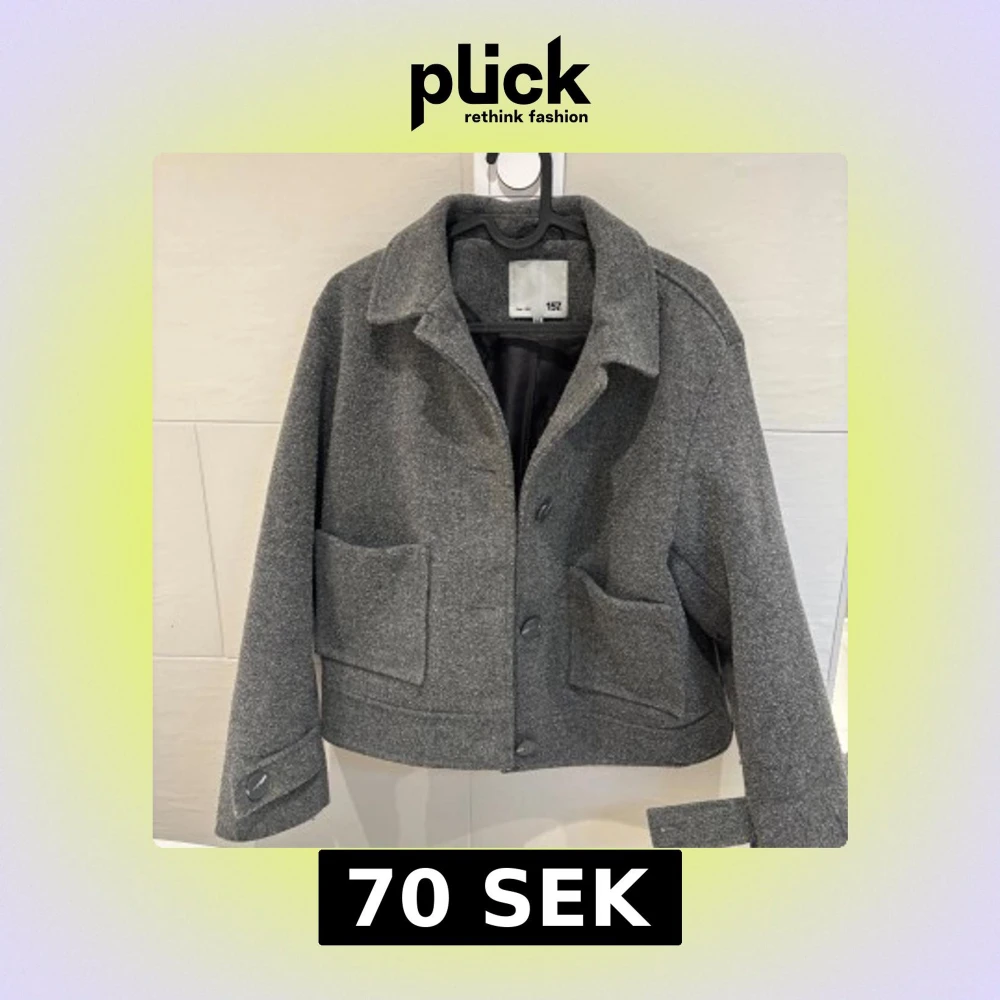 Säljer en stilren grå kort kappa från 157 med stora fickor framtill och knappar. Jackan har klassisk krage och är helfodrad. Perfekt för dig som gillar en enkel men trendig look.