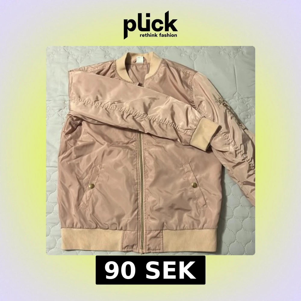 Snygg beige bomberjacka med dragkedja och ribbade muddar. Jackan har två fickor med knappar och en klassisk bomberkrage. Perfekt för en stilren look.