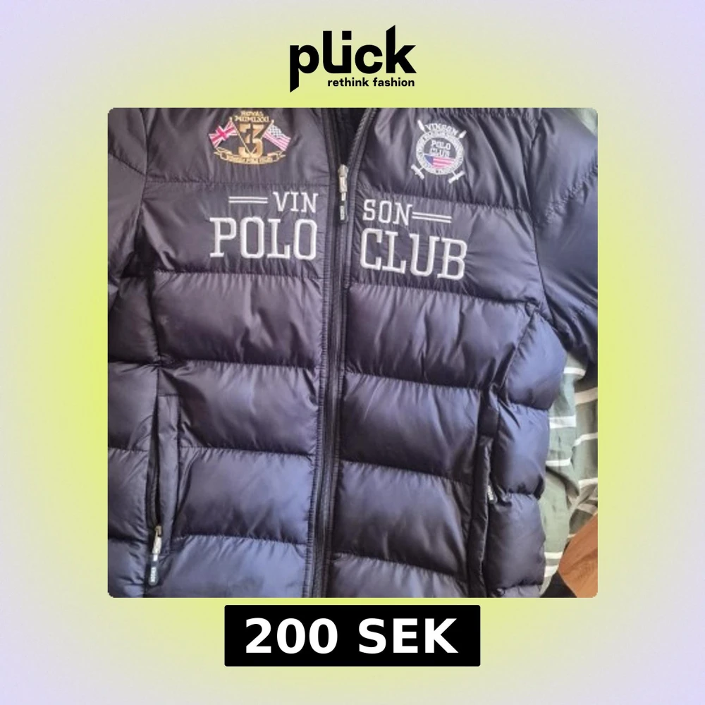 Snygg svart pufferjacka från Vinson Polo Club med broderade loggor och stora vita tryck fram. Jackan har huva, dragkedja och två fickor med dragkedja. Perfekt för kalla dagar och riktigt sportig vibe.