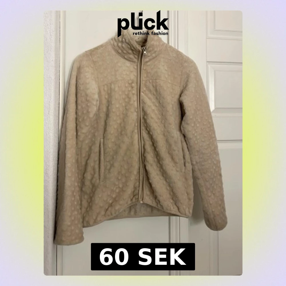 Mysig beige teddyjacka med hög krage och hel dragkedja framtill. Jackan har ett prickigt strukturmönster i materialet och två sidofickor. Perfekt för dig som vill ha en varm och trendig look under kyliga dagar.