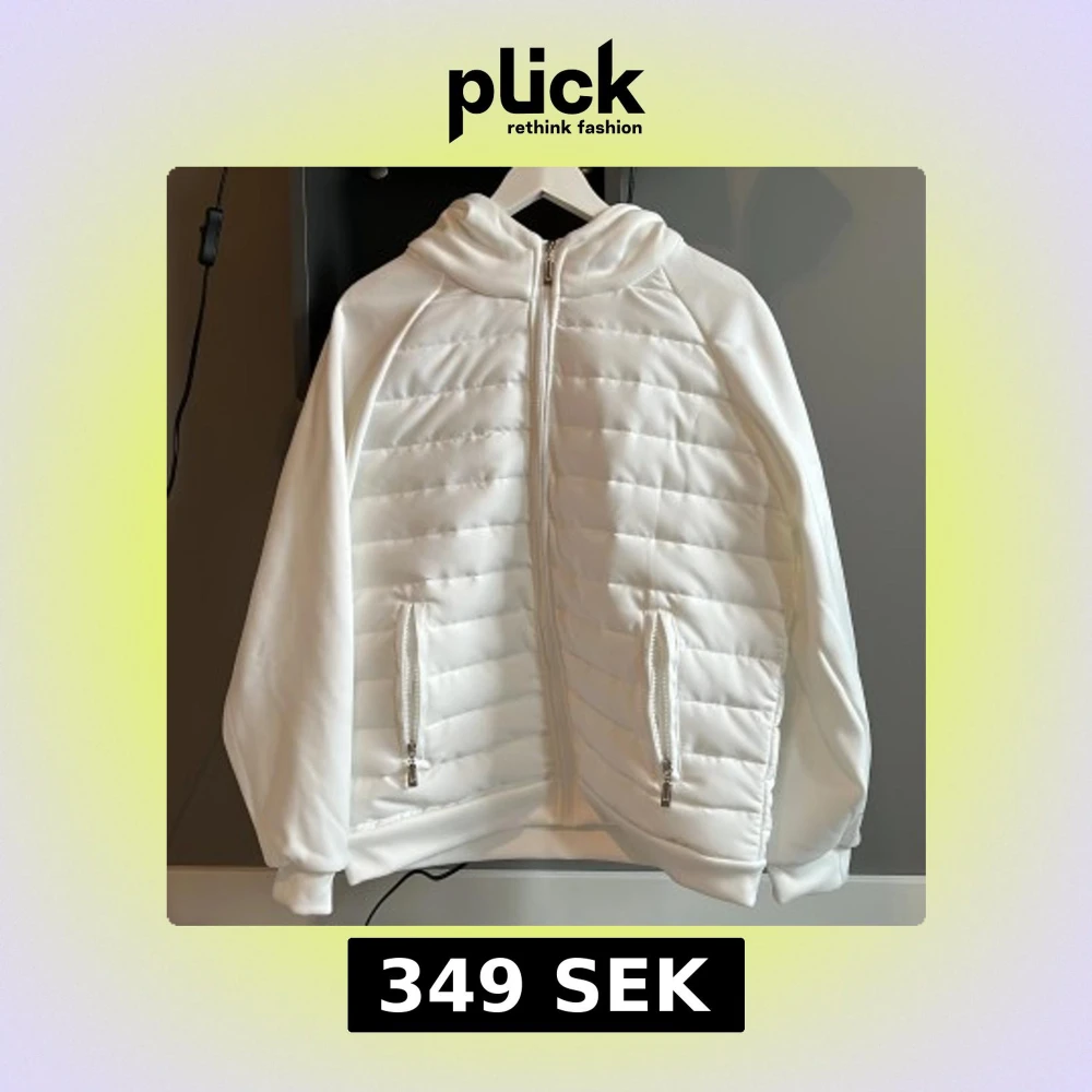Säljer en helt oanvänd stilren vit cardigan med luva och är i storleken S.