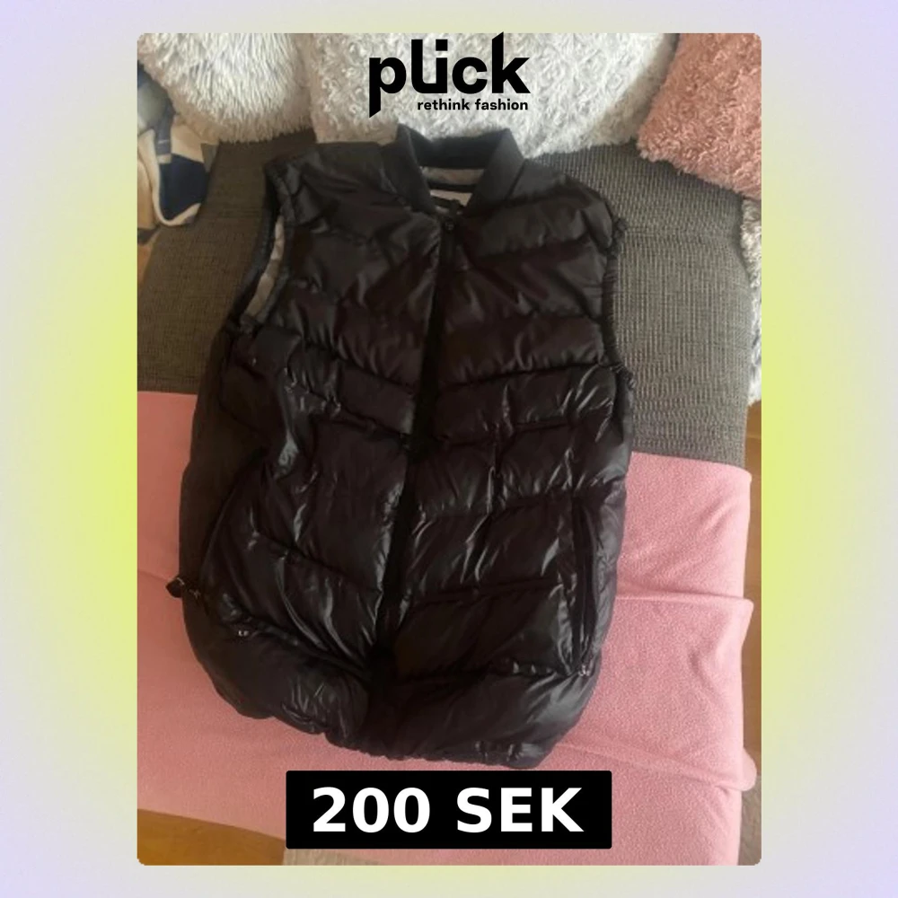 Svart dunväst med dragkedja