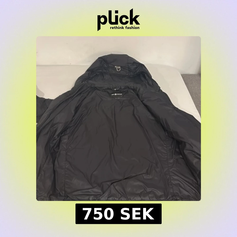 Svart pufferjacka från Soul River med huva och dragkedja framtill. Jackan har en enkel, stilren design och är vadderad för extra värme. Perfekt för kyliga dagar och har ribbade muddar vid ärmsluten för en skön passform.