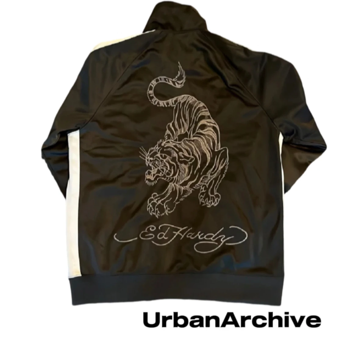 Säljer en svart vit tracksuit top från Ed Hardy. köpt på kennedies och skicket är nästintill oanvänd. DM för mer information! Kan tänka mig att sänka priset lite vid snabb affär🙏