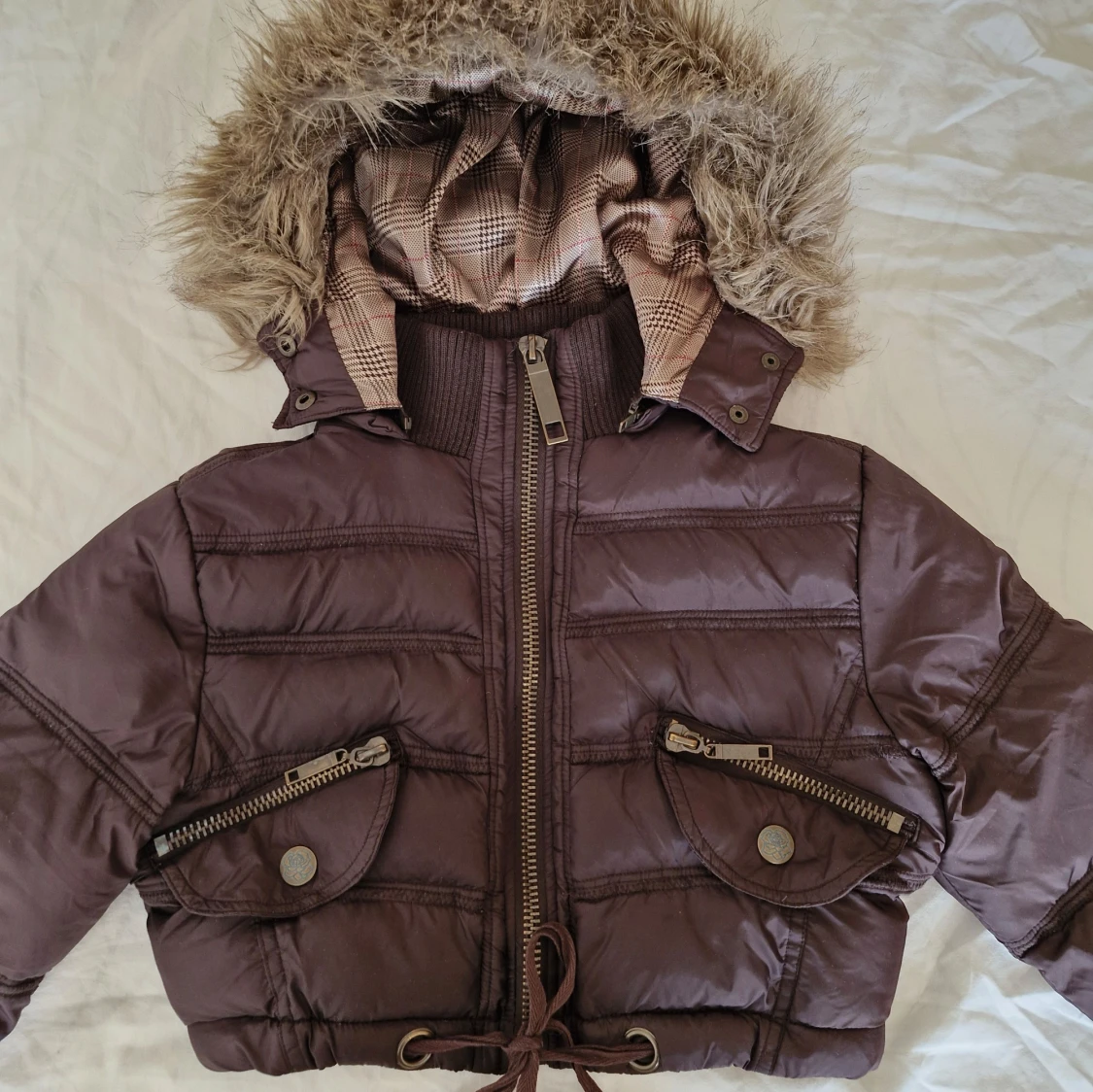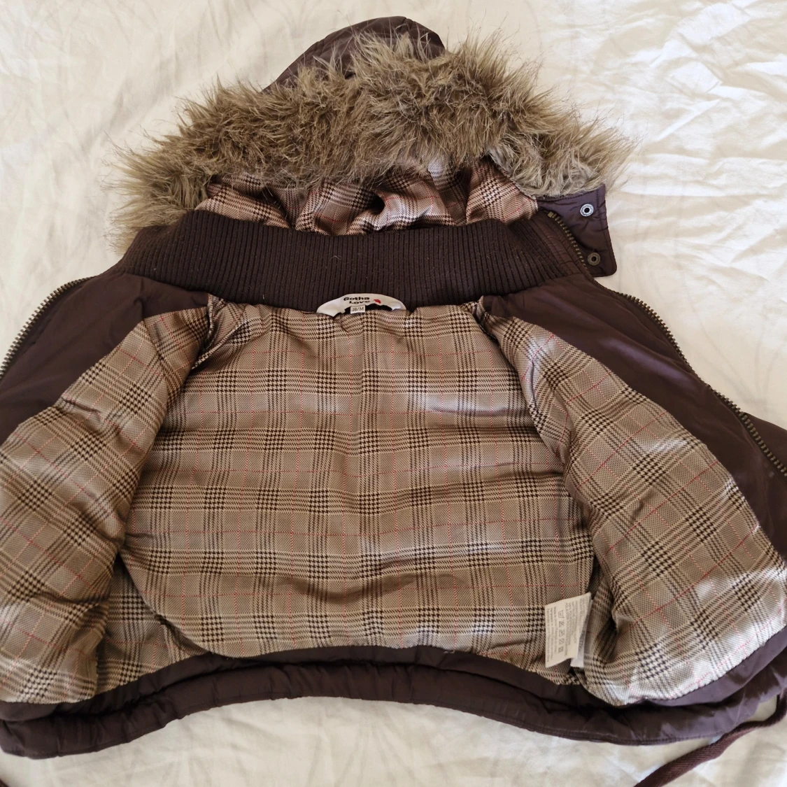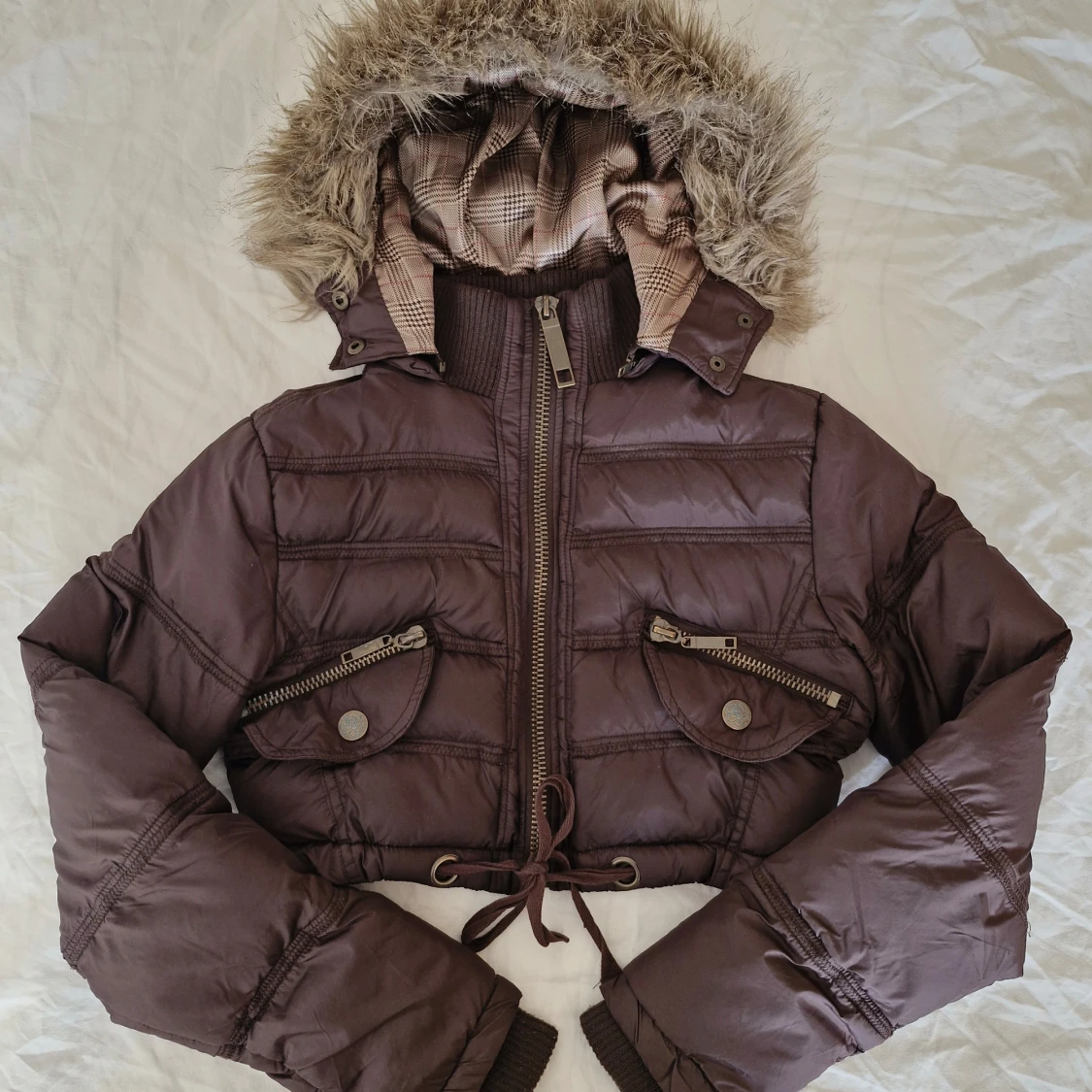 Fantastisk höstjacka från Gotha Love 🍂 Croppad modell med snörning nertill och fakepäls på luvan 💕 Sann till storlek (M), kan anpassas för att passa mindre med knytbandet i midjan. Även två fickor med dekorativa knappar som stängs med dragkedja och gulligt rutigt foder! Det enda riktiga tecknet på användning är en liten missfärgning på ena fickans dragkedja, se bilder! I övrigt är jackan i mycket gott skick och redo för nya äventyr ❤️ Pris är förhandlingsbart!
