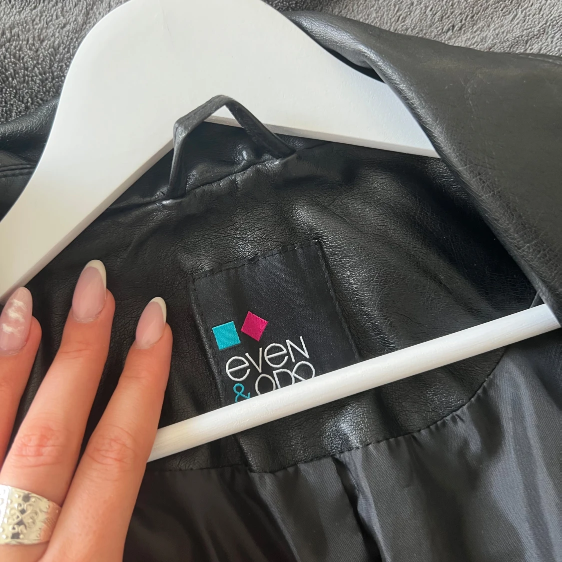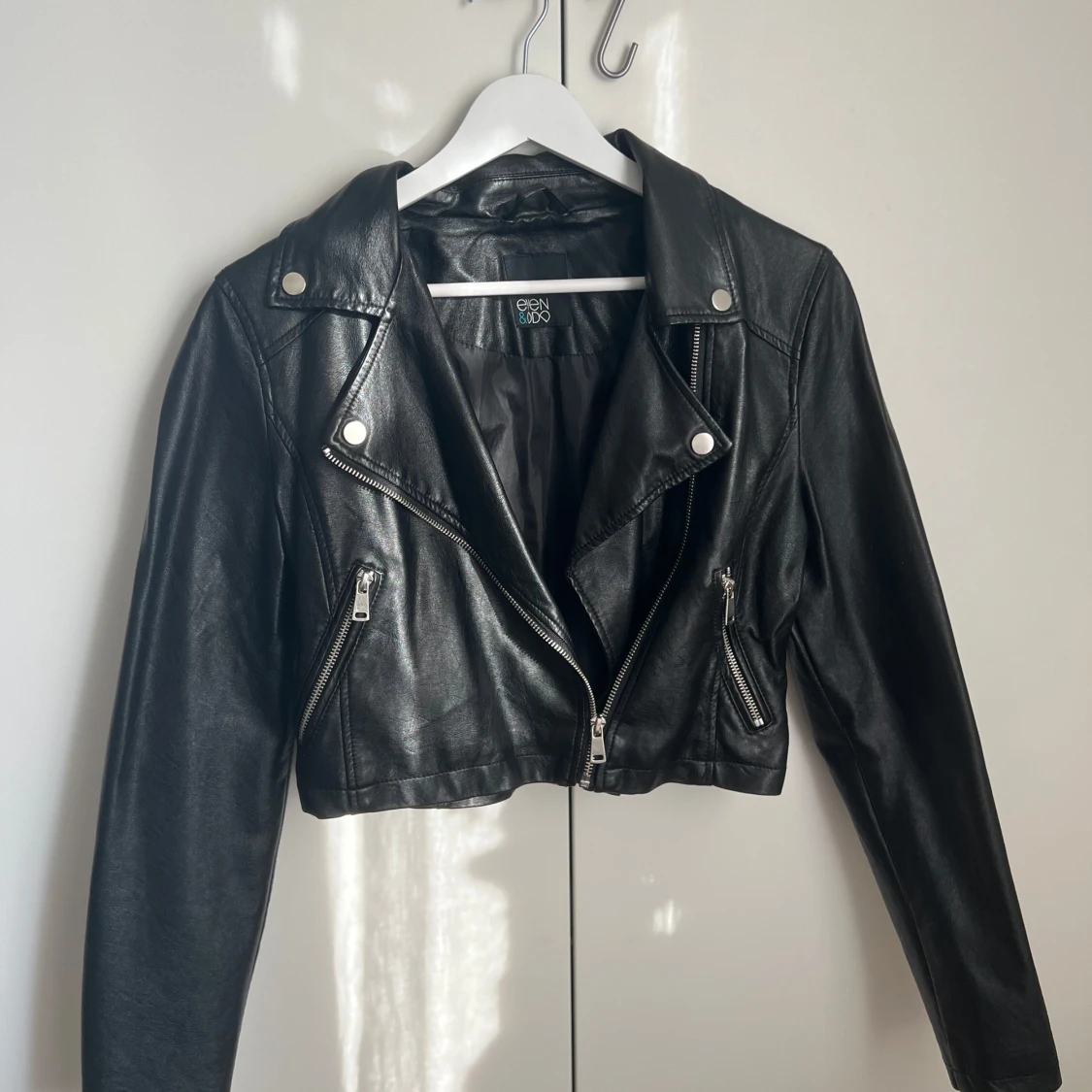 Snygg svart skinnjacka från Even&Odd i bikerstil. Jackan är croppad med coola silvriga dragkedjor och detaljer, har långa ärmar och klassisk krage. Perfekt för dig som vill ha en edgy look till din outfit.