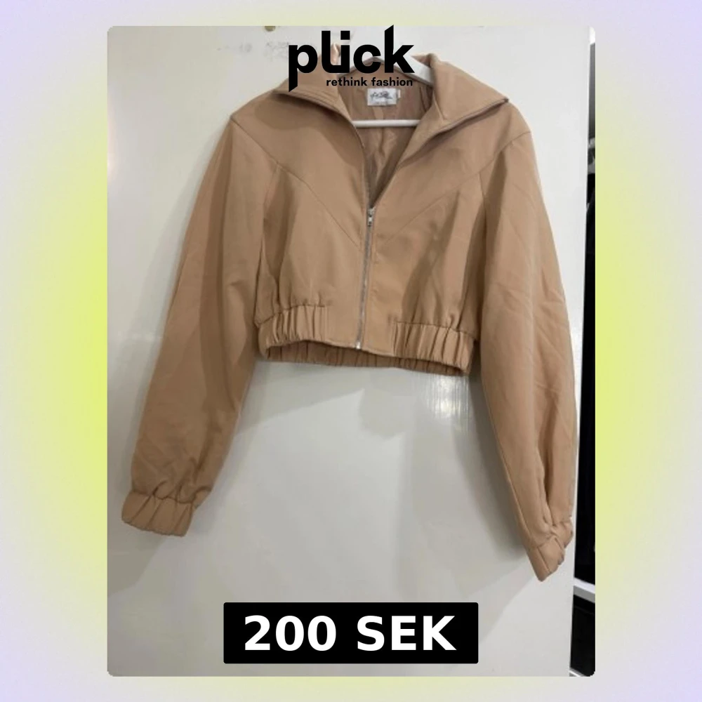 Säljer en beige croppad bomberjacka från Pretty Little Thing. Jackan har dragkedja framtill, bred krage och resår i midjan samt vid ärmsluten. Perfekt för dig som gillar en avslappnad men trendig look.