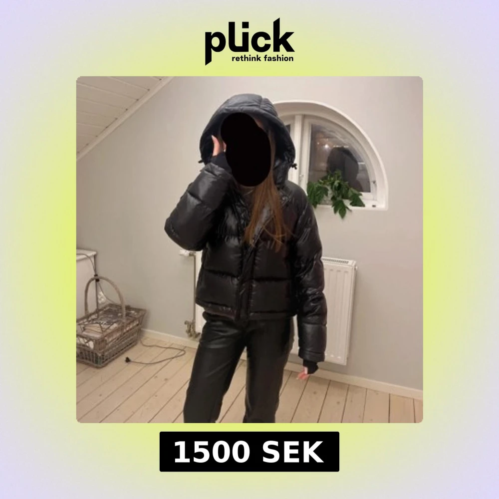 Säljer en svart, glansig dunjacka från aritzia. Jackan har en huva och dragkedja framtill. Den är designad i Kanada och har 700+ fill power för extra värme. Perfekt för kalla dagar! Nypris 3000kr