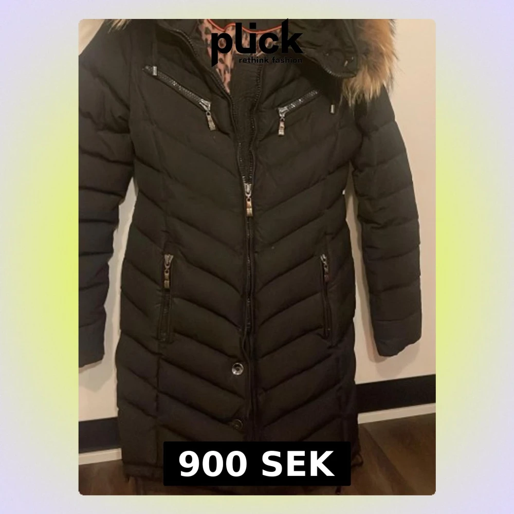 Säljer en svart lång dunjacka från Hollies med snygg pälskant på huvan och flera dragkedjefickor. Jackan har quiltad design, metallknappar och patch med logga på ärmen. Perfekt för kalla dagar och riktigt stilren look.